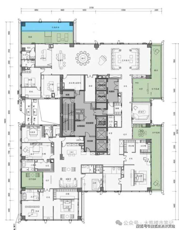 最后就是顶楼的1050㎡,堪称“空中别墅”。