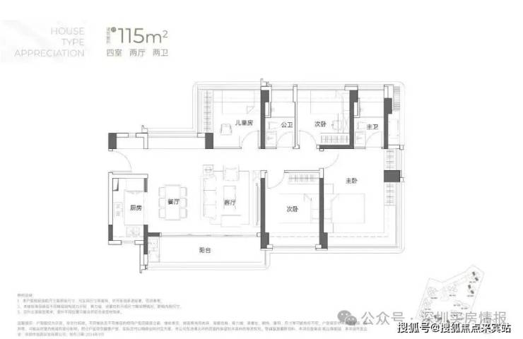 建面约115㎡4房2厅2卫