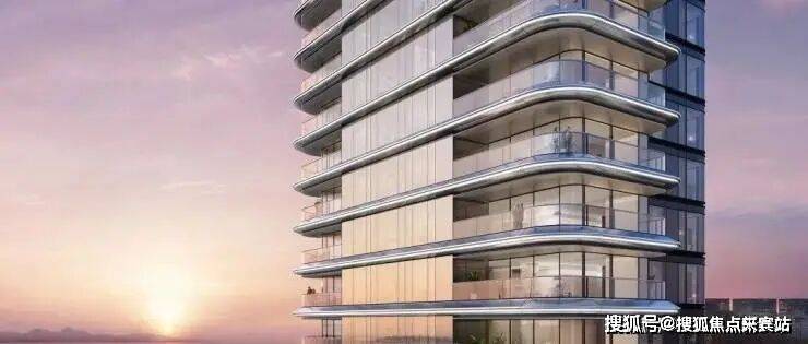 采用曲面玻璃幕墙与金属材质,建筑如粼粼波光,将海景与天空动态收纳。