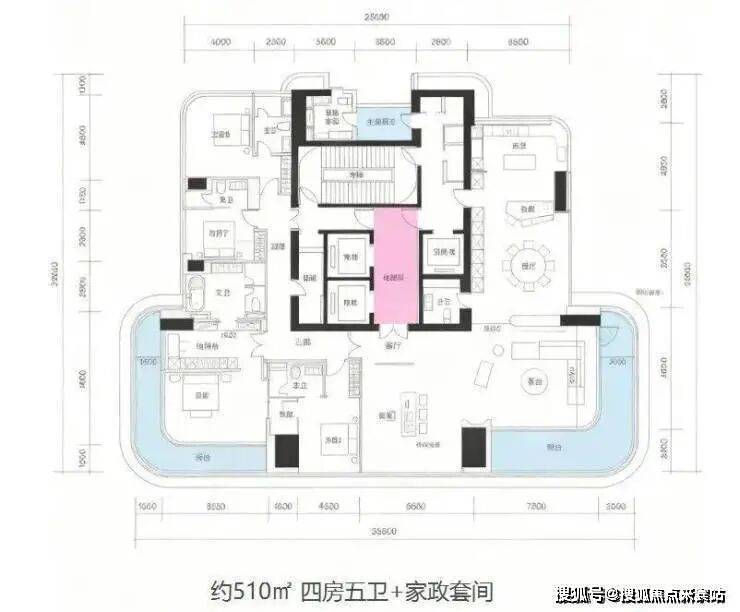 层高达到3.3-3.6米,L型阳台进深达2.8米,专梯入户,保障极致私密与尊贵感。