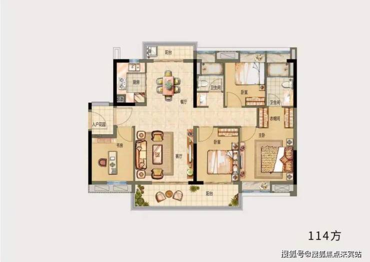 <户型D,四房两厅两卫,建面约114㎡>