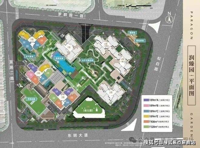 润臻园占地面积约2.98万㎡,容积率7.19,由7栋总高26-57层高的住宅组成,还有1所9班幼儿园。