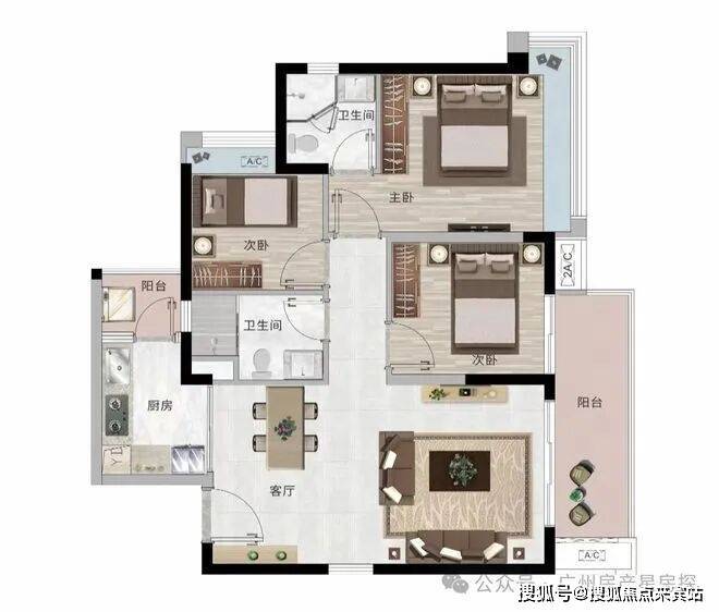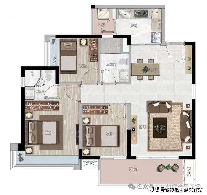 建面约89㎡【南向阔景·双阳台大三房】