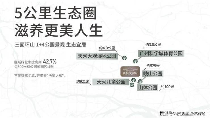 外揽“1+4公园”:山体公园、天河区儿童公园、岐山公园、天河大观湿地公园、广州科学城体育公园。