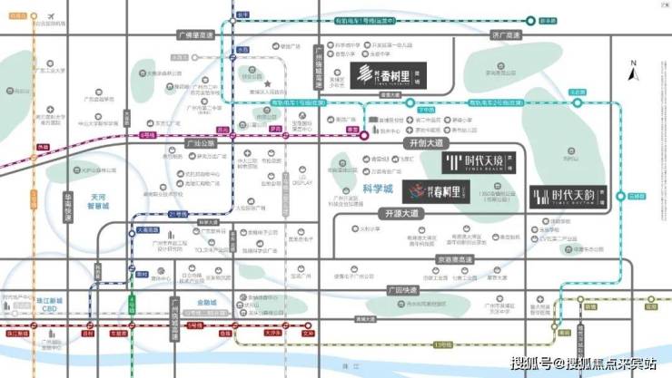 项目汇集6号线、21号线、7号线二期(在建中),3条地铁线。约1.4公里抵达6号线香雪站,2站到苏元,一步换乘21号线(快线),3站抵达天河。4有轨电车 通达黄埔腹地