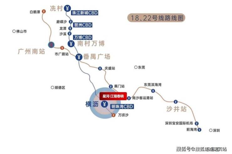 22号线延长线西行至白云机场、东行至深圳,双地铁连接中山、珠海、广州、深圳4大核心城市;