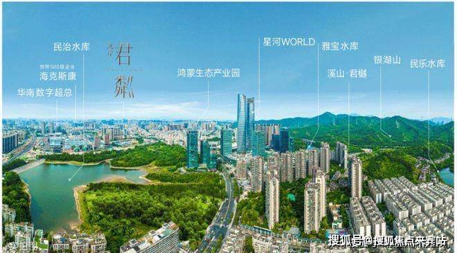 君粼可近享银湖山、塘朗山两大山脉,尽揽民治、民乐、雅宝和南坑四大湖泊;