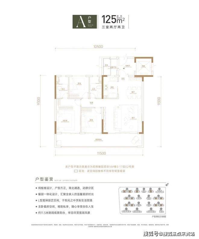 ①建筑面积约125㎡的3房2厅2卫