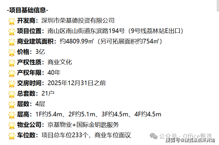 项目是商办公寓,不带学位,附近有南山实验教育集团(荔林小学)、中学是南山实验教育集团(南海中学近几年在南山成绩都比较好,处于中上等水平。