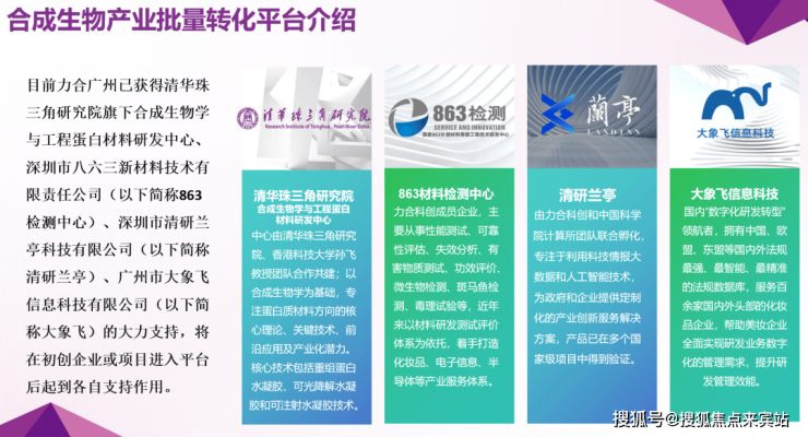 依托 “合成生物产业批量转化平台” ,力合科创联合清华珠三角研究院、863材料检测中心、清研兰亭、大象飞等顶尖机构,为企业提供从技术研发、检测认证、数字化管理、产业资源对接到基金投资的全周期赋能,真正实现“空间+服务+生态”的深度融合,让企业专注创新,稳健成长。
