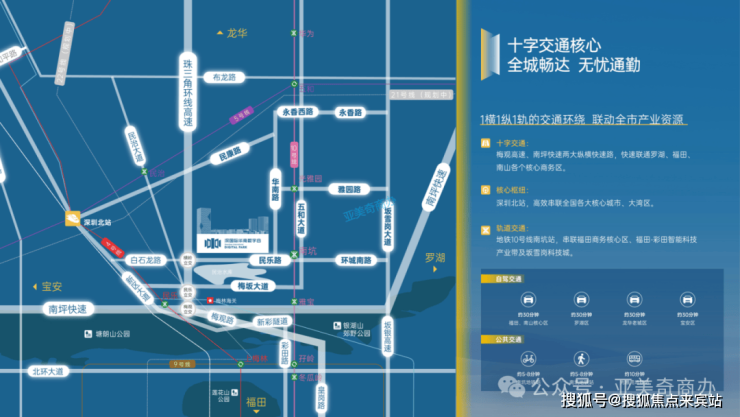 梅观高速、南坪快速两大纵横快速路,快速联通罗湖、福田南山各个核心商务区。