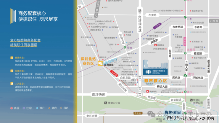周边涵盖COCO PARK、COCO CITY、民治天虹、8号仓等众多醇熟商业配套,满足日常休闲、商务接待等需求。