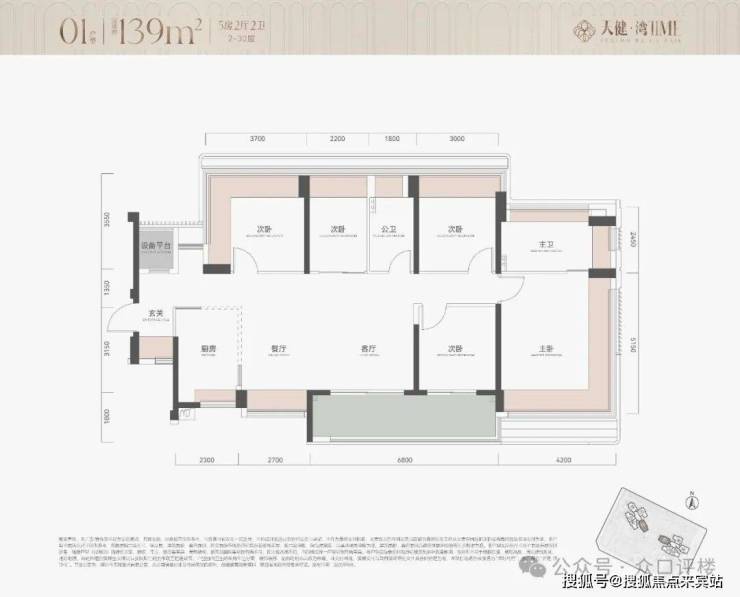 项目用地面积13657.28㎡,容积率仅2.8,建筑面积38155㎡,含住宅34555㎡,其他面积用于物业用房、托育机构和公交站,车位380个。户型产品为113㎡ 4房和139㎡ 5房 约290套,2栋100米内31层住宅,2梯4户,其中主力为113㎡ 4房,具体户新图暂未公布。
