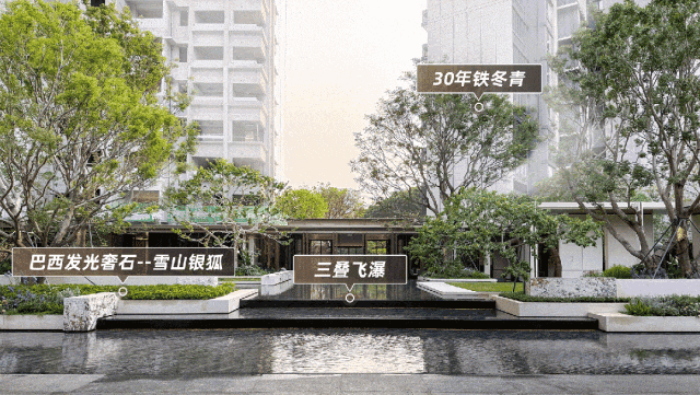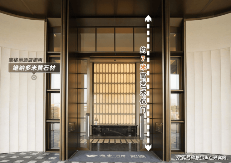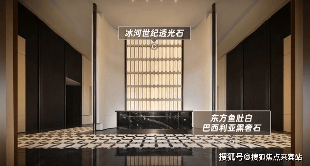 项目共规划约7.2万㎡超级中央园林,目前已开放实景园林。入户大堂以宝格丽酒店设计风格为灵感,搭配约7米高的艺术移门和奢石弧形墙面,高级感满满。