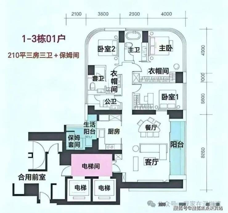 1D\1E栋:约302㎡户型4+1房2厅4卫,有2栋,每层两户,1D栋49层,182.77米,1E栋43层,161.77米,均为西南向,3梯2户,看深圳湾海景,落位于地块西侧南北通;总价预计4360-5900万!