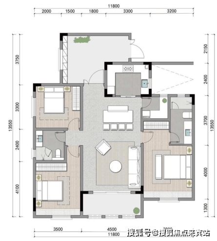 ·三分离卫浴:干湿分离,独立家政区,采光通风兼具;