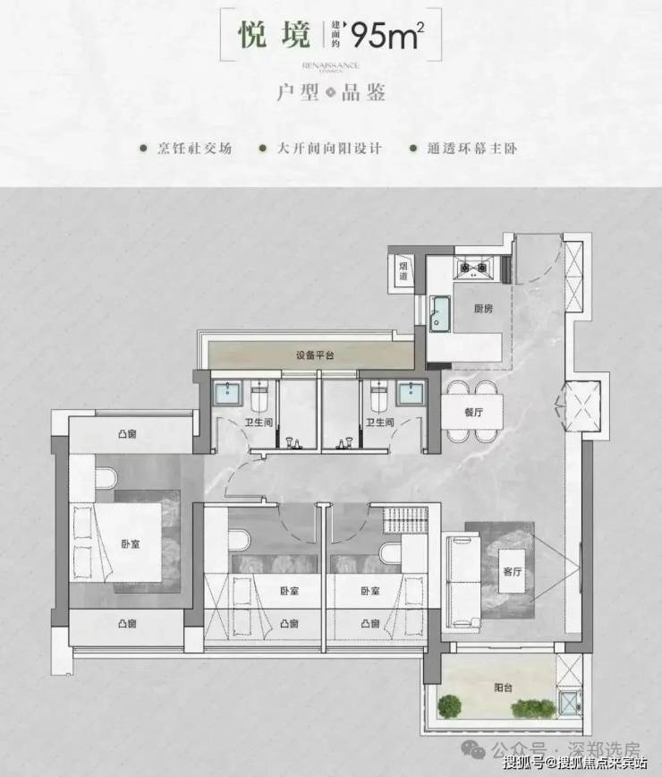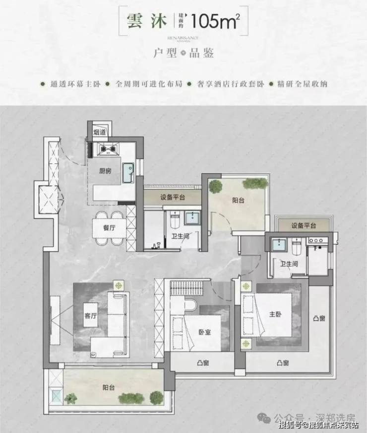 【户型面积】建面约90-95-105-143㎡3-4房