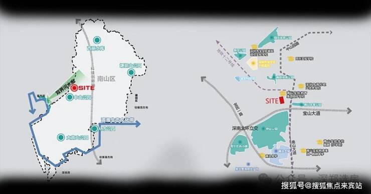 位于深圳南山区中部组团,属于粤港澳大湾区第一发展圈层,是高新技术、文化创意、文脉传承于一体的创新发展片区。场地区域位置优越,周边配套丰富,2KM 范围内有公园、学校、南头古城商圈、医院、地铁等;场地高层视线开阔,可远眺深圳湾。