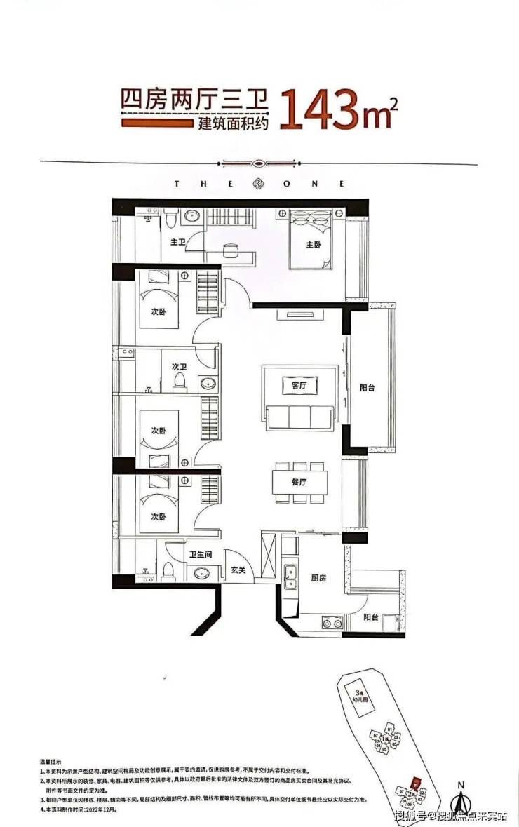 144㎡南北通透大四房户型,单价5.20-5.07万,749-859万;