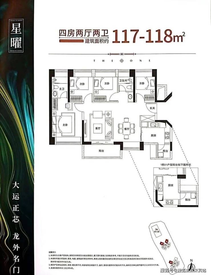 118㎡南北通透四房户型,单价5.04-6.10万,595-718万;