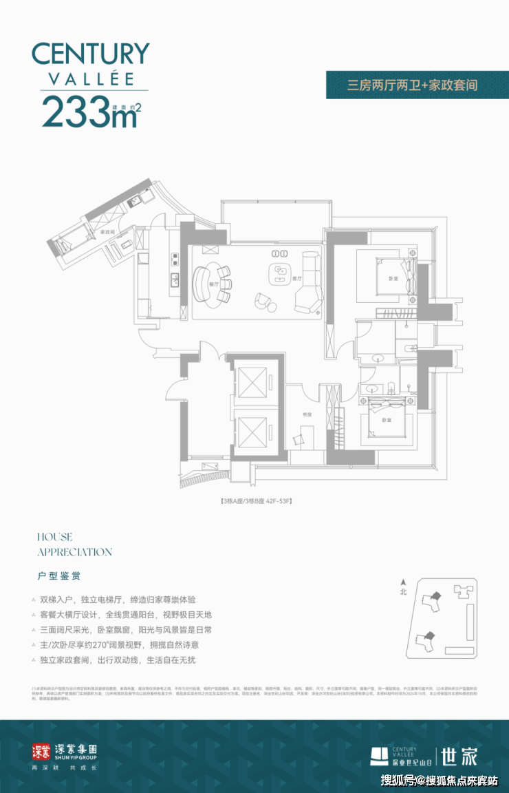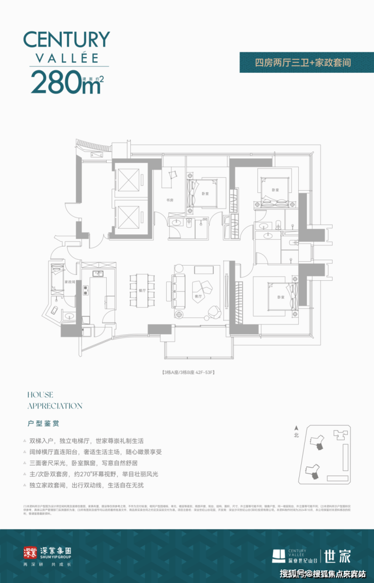 深业世纪山谷世家大平层住宅出售,销售户型233平米,280平米,386平米三至四房和420--1080平云端复式户型