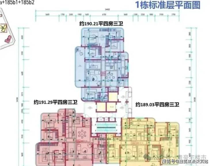 总楼层:最低22层、最高24层,每层布局2至3户,还有地下1层。