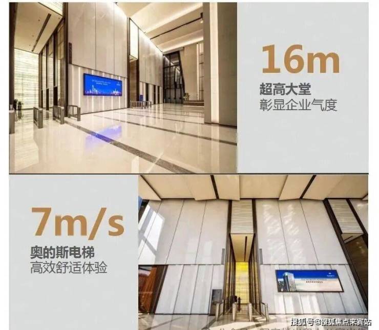 【配置】16米超高大堂、4.5米阔境层高、2.6米超大幅宽玻璃幕墙、13部最快7米/秒奥的斯电梯、VIP专属直达电梯、VIP总裁盥洗室