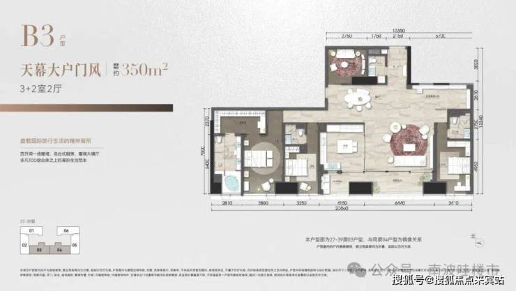 ◎建面约350㎡ 3+2室2厅,天幕大户门风