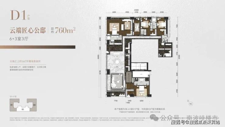 ◎建面约760㎡ 6+3室3厅,云端匠心公邸