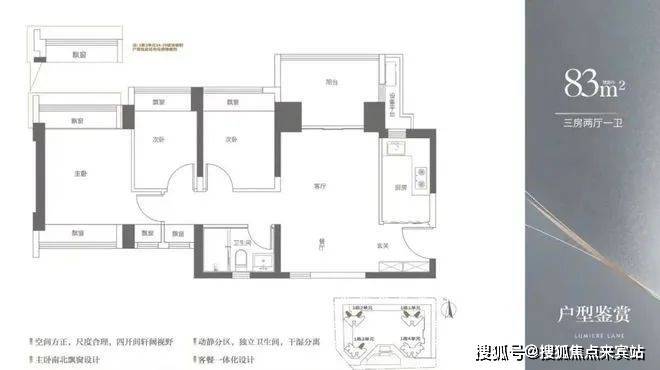 83㎡3房1卫,主卧跟客厅南北通