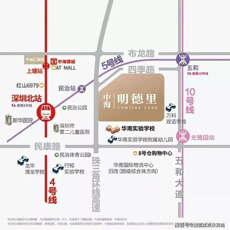 2)北站国际商务区,深圳六大总部基地之一,高投入打造国际化城市会客厅;项目距离深圳北站直线约2公里,所在民治街道是龙华目前发展的核心区域;明德里,于双区之中,在重点产业走廊之上,区域优势得天独