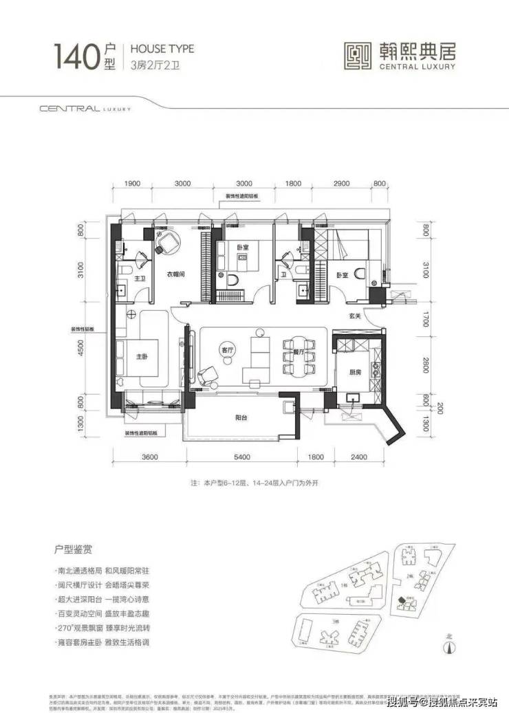 户型亮点:105㎡-120㎡-140㎡高使用率,三至四房奢阔布局
