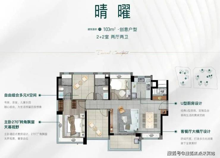 书房、茶室、儿童乐园之间自由组合的多元X空间,做到了多1房,客餐厅的大横厅设计,空间感更好。