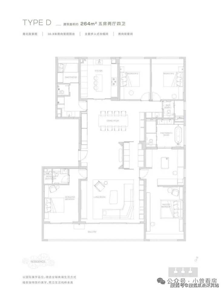 264为五房两厅四卫产品,更细腻的产品设计,超奢华四件套南向主卧,标准南向次主卧, 6.6米巨型方厅,纵向超长LDK一体化空间,专属家政保姆空间,超大容量收纳空间,令居住的尊贵从每处品质细节里流露而出,创造独一无二的奢享体验。
