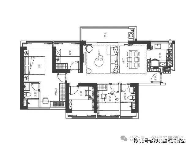 家政阳台定位,6人位餐厅满足多人就餐,主卧独立卫生间