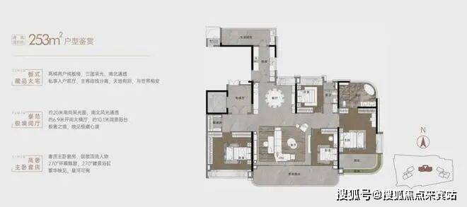 保利华创都荟天珺项目的建面约253平户型,无疑将豪宅的奢阔与尊贵感展现得淋漓尽致。作为项目的楼王,它采用了2T2专梯专户设计,确保了住户的私密性和尊贵体验。南北通透的布局和低密板楼的设计,不仅保证了室内的通风采光,更彰显出豪宅的高贵品质。
