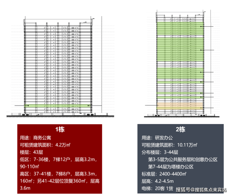 项目空间规划为2栋建筑,1栋7-43为公寓,2栋3-5楼、7-44层为创意办公,1-2楼为商业,是集高端公寓、商务办公及特色商业于一体,将打造为深圳北站商务区商务综合体。