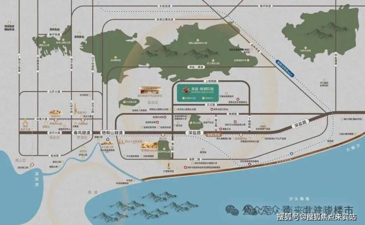 ·多维交通:双地铁口(2/8 号线海山站 & 盐田港西站,约900 米直达),2 站至罗湖、10 站达福田;深盐路、惠深沿海高速、春风隧道三大快速路网,叠加沙头角口岸(重建中)、莲塘口岸双口岸,轻松实现深港双城生活。