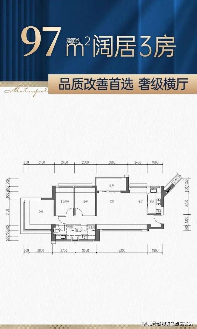 【12栋——首开景观楼王,3梯5户,四房首推劲销9成,居住舒适度超高】建面约75-97㎡全能三房【新品户型鉴赏】