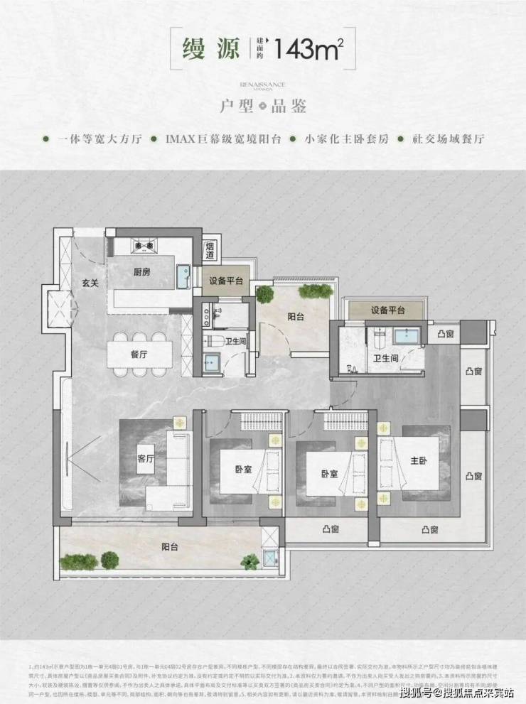 面积与户型:推售房源涵盖建面约90-95-105-143㎡的3-4房,共298套可售房源。其中,95/105㎡三房户型以朝东为主;90㎡三房户型朝西;143㎡四房大户型东南朝向。