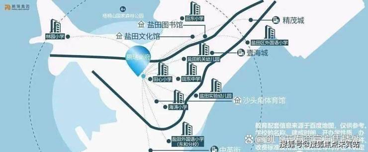 【教育资源】:项目自身配备一所建筑面积约 3000 平方米的 9 班制幼儿园。根据百度地图显示,项目毗邻田心小学,周边还有田东中学、盐田机关幼儿园等学校,教育资源较为集中。