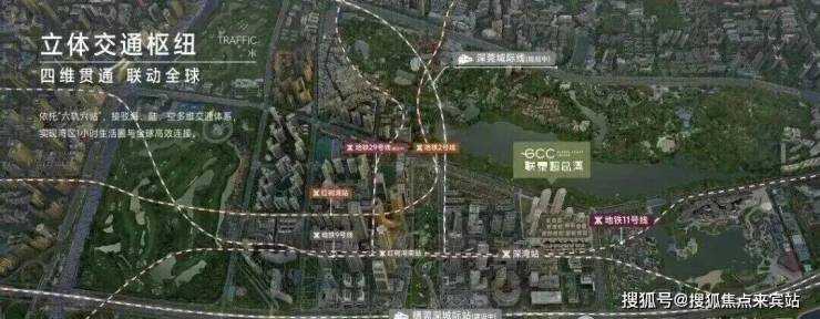 项目为地铁上盖物业,近距接驳2号线红树湾站与9号线深湾站。而深超总片区规划"六轨六站"立体交通网络,包括地铁2、9、11号线,规划中的29号线以及穗莞深、深莞城际轨道。