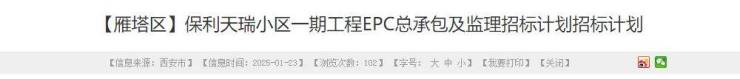 作为保利在西安储备了多年的城改项目,在春节前1月23日,也就是拿地前保利就发布了关于保利天瑞一、二期的招标计划。