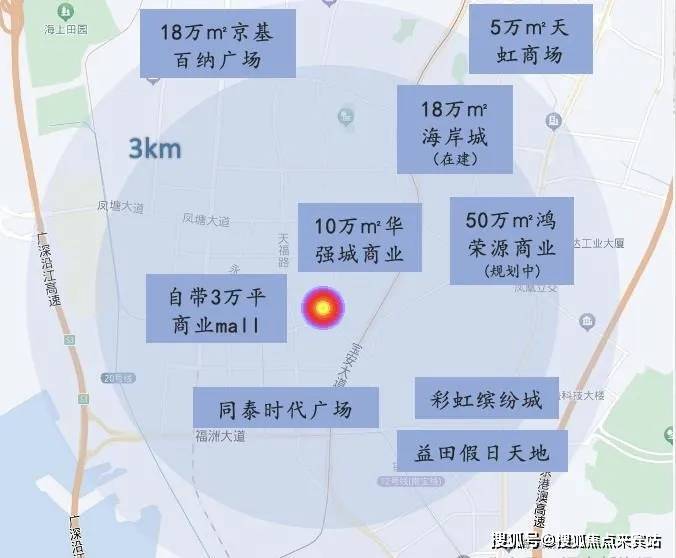 【商业】3km 范围内有京基百纳广场、天虹商场、海岸城
