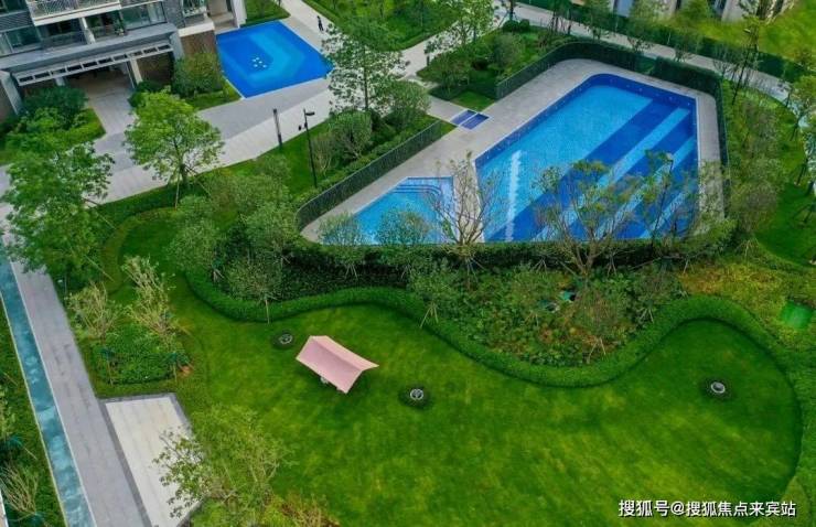 【约430方大泳池】:泳池设立在社区园林内,业主下楼即可实现游泳健身,戏水的同时观赏花园美景,度假般的休闲体验,带来更高品质的生活享受。