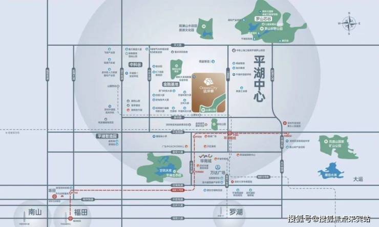 位于龙岗平湖山厦路与惠华路交汇处,东临广深铁路距平湖1.5公里,西临平湖金融服务业基地。远洋城,前身为平湖街道山厦旧村城市更新单元,总占地面积约22.3万㎡,总规划建面69.3万㎡,其中住宅分6个地块开发,规划1所九年制54班学校,全部建成后有22栋33-48层的住宅,2所18-43层高的办公,是一个集住宅、办公、商业、教育、公园于一体的综合体大盘。
