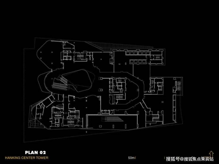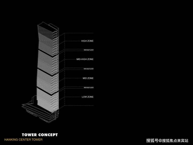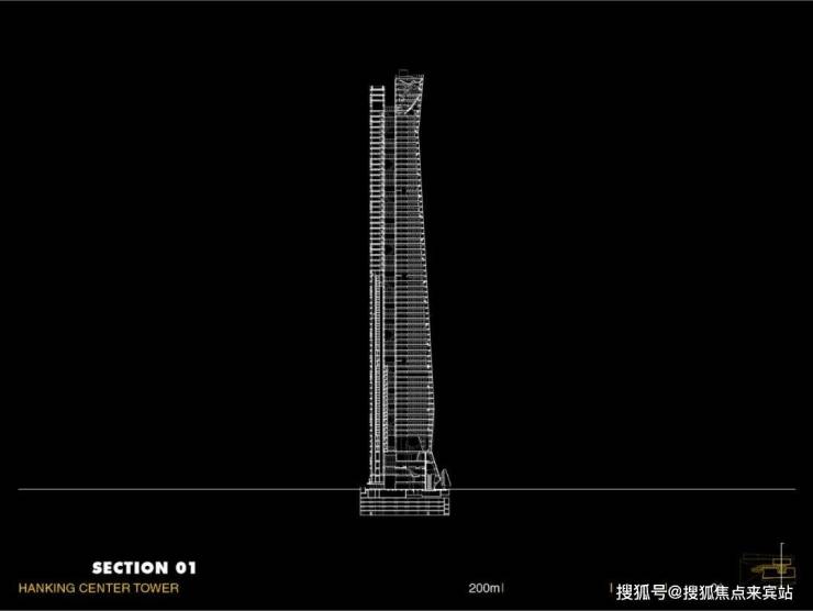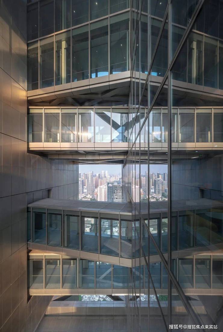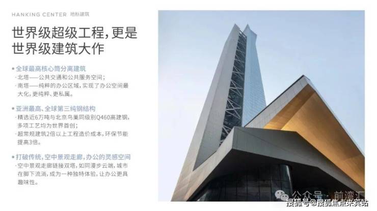 Morphosis 建筑事务所设计的汉京中心,采用核心筒外置的设计手法,最大化建筑平面的灵活性,将流线与各类基建设施置于塔楼外侧,对摩天塔楼类型建筑进行了再定义。先进的塔楼结构满足了室内空间配置的多样性,玻璃天桥和大型钢结构支撑将核心筒与塔楼主体紧密相连。项目竣工于2018年,到2021年才正式对外开放。这栋359.8米汉京中心是目前世界上最高的核心筒外置塔楼。