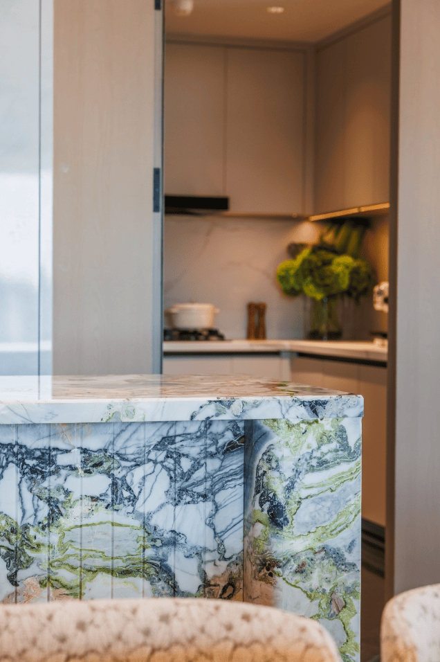 岛台采用的是冷翡翠大理石,清灵如诗,莹洁似玉,每一块都是独一无二的艺术品。