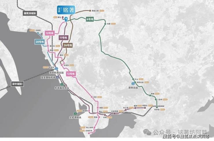 一、区域价值:100km黄金内湾 西部门户中心【 区域 | 黄金内湾 西部门户 】• 黄金内湾规划落地:珠江口约100公里海岸、约2100平方公里水域面积,将珠三角核心区打造成更具辐射力的改革发展主引擎,带动广州、深圳、珠江口西岸三大都市圈协同发展、聚势腾飞。• 宝安战略地位提升:前海深港合作区以及南山、宝安、光明、福田、龙华5个区划入“黄金内湾”,宝安从偏居西部,变为“黄金内湾”腹地,成为深中通道、深中城际、深江铁路等的“第一站”。• 松岗深圳西部门户:深圳都市圈发布,松岗从“边缘”走向“中心”,着力打造茅洲河新型工业带、107国道沿线商务带、大田洋高新科技园区,成为深圳西北门户中心新城。• 占位西部发展中轴:铭著扼守深圳西门户,享前海扩容、大空港等多重规划辐射,片区打造以会展、航空、科研为重点的战略性新兴产业集群,将汇聚数十万高端技术人才,擎动深圳西部经济腾飞。