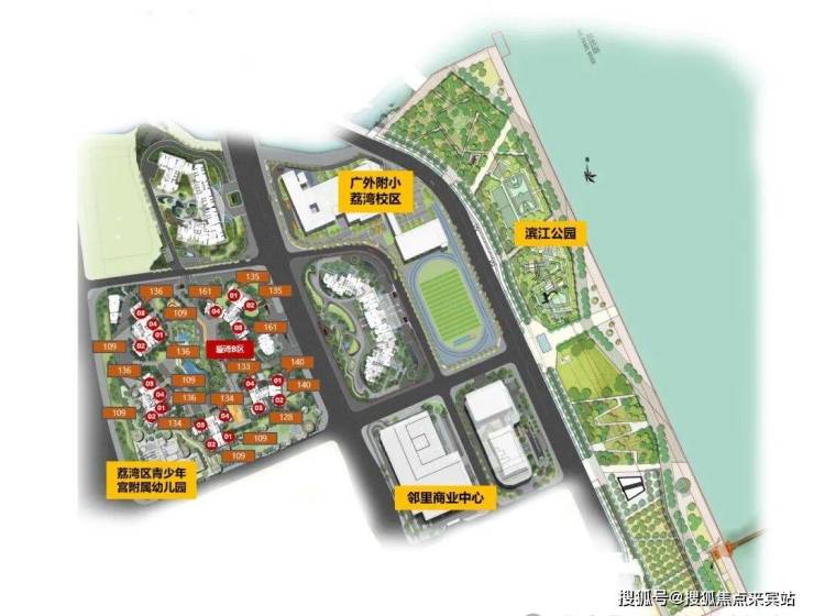 🔘广州滨江天地·璇湾,为广州滨江天地第一期组团,总占地123653㎡,总建筑面积317811㎡,总计容面积约230000㎡(含小学),配建一所12班幼儿园(荔湾区少年宫附属幼儿园)及一所30班小学(广外附小荔湾校区)。